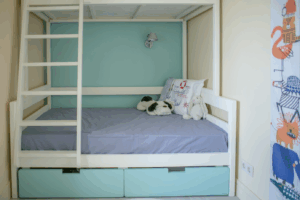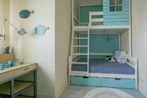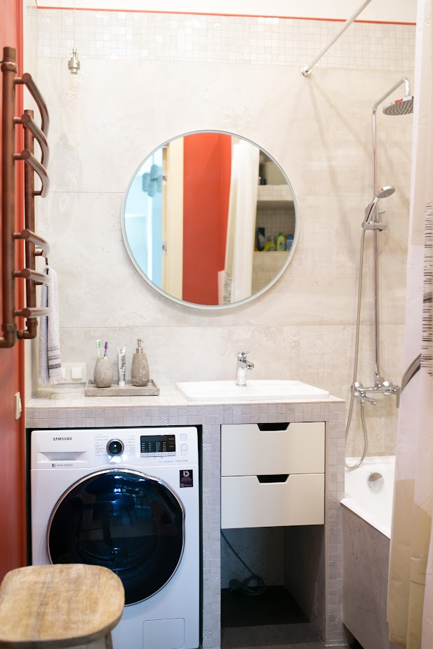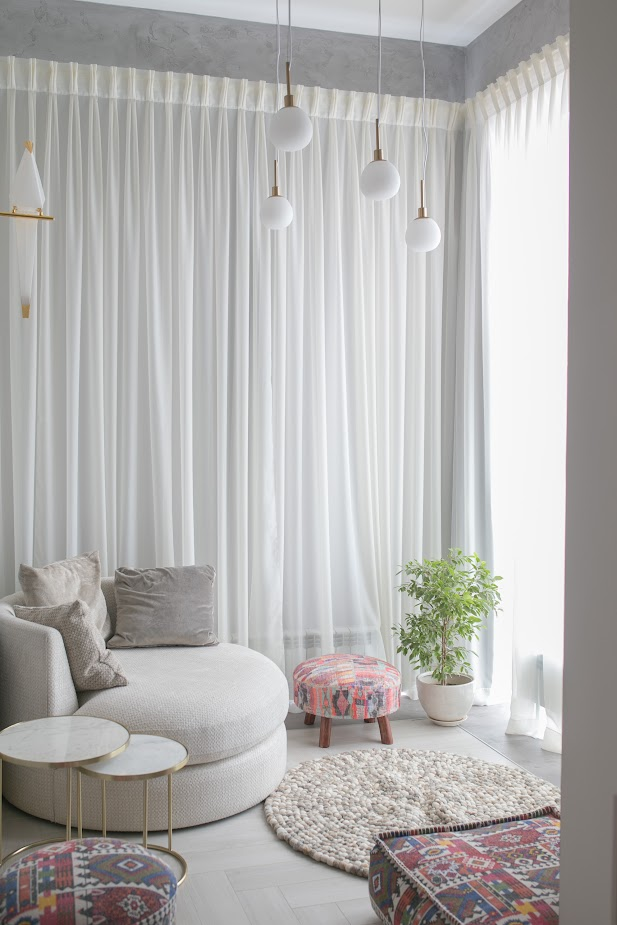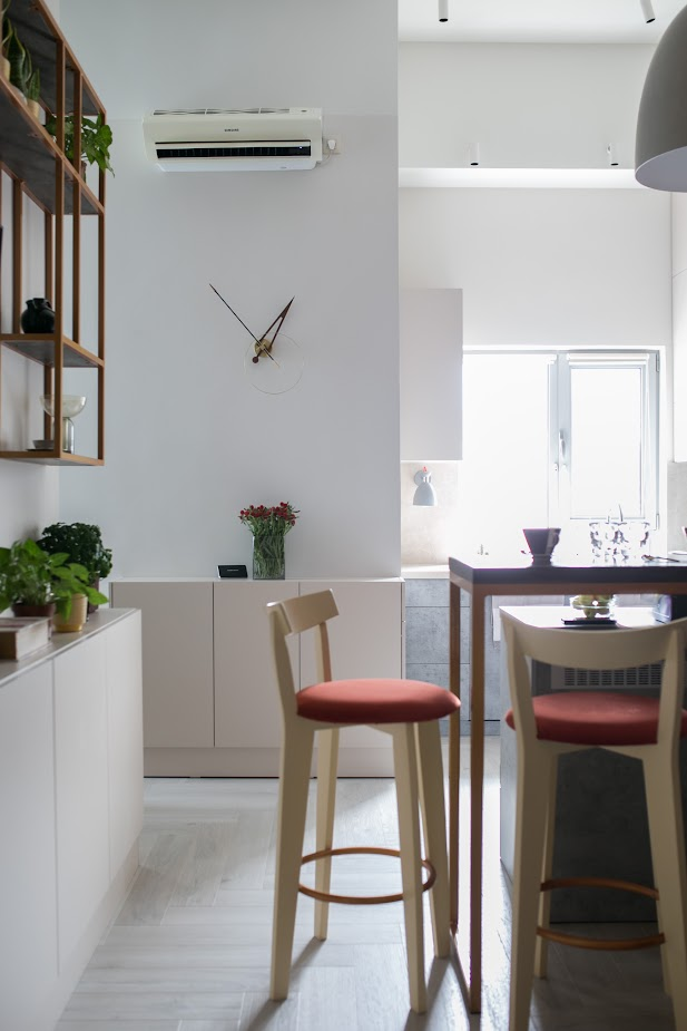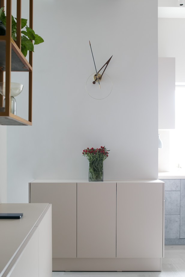 молодая семья, ожидающая ребенка, хотела разместить полноценную детскую с игровой и рабочей зонами в комнате 9,5 м². В небольшой спальне необходимо было организовать гардеробную зону вместо шкафа. Разделить совмещенный санузел. На кухне устроить барную стойку. Визуально скрыть слишком большую высоту потолка, при небольших площадях комнат. Скорректировать восприятие пропорций пространства.