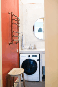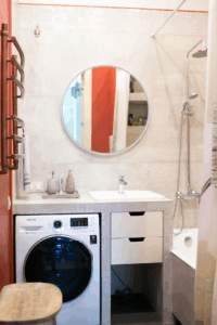 большая (5,5 метров) высота потолков при относительно небольшой площади (ощущение дома-колодца).