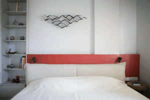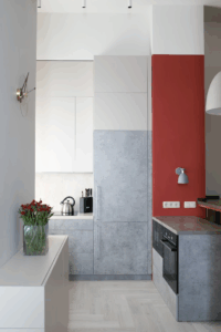 лаконичный современный интерьер с яркими, сочными акцентами.