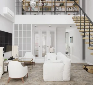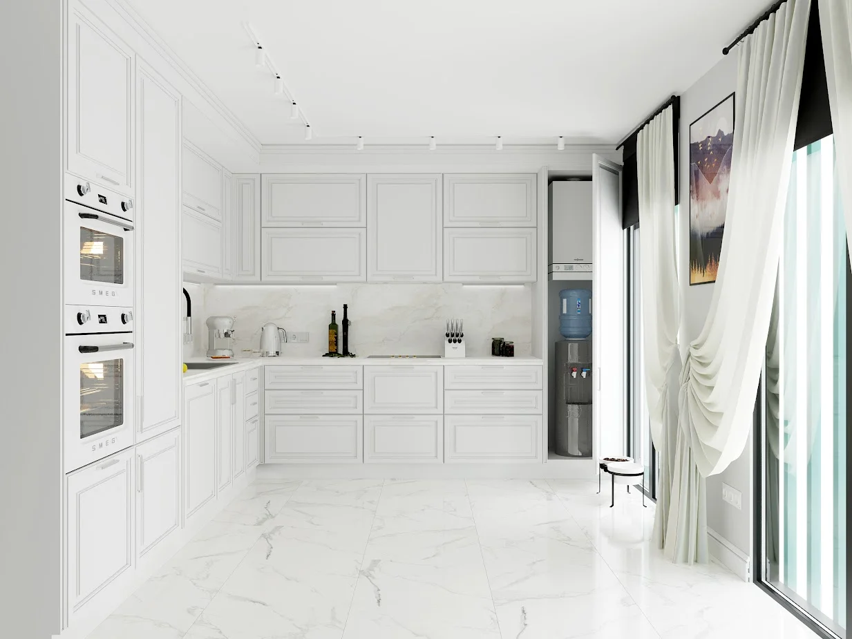 много белого, воздушный, прозрачный и легкий интерьер.
