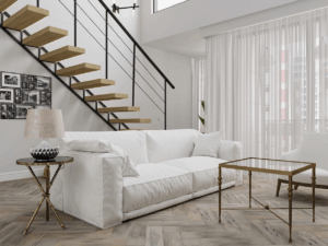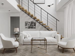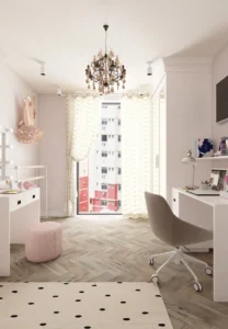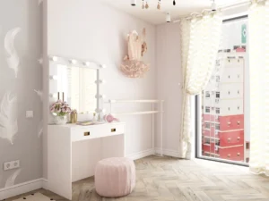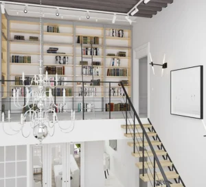 молодая семья с двумя детьми приобрела таунхаус у моря для постоянного проживания, но необходимо было минимизировать недостатки, в том числе за счет визуальных решений. Создать как можно больше мест хранения. Организовать проходную библиотеку на лестничной площадке второго этажа. В детской девочки организовать место для занятий балетом.