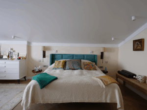 очень низкая (2,3 метра) высота потолков, в мансардных помещениях минимальная высота потолка 1,2метра.